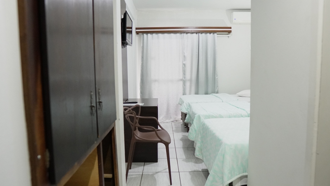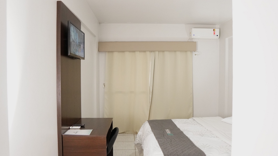 Apartamentos sujeitos a alterações em relação ao tamanho do quarto, banheiro e marca de ar‑condicionado e frigobar.